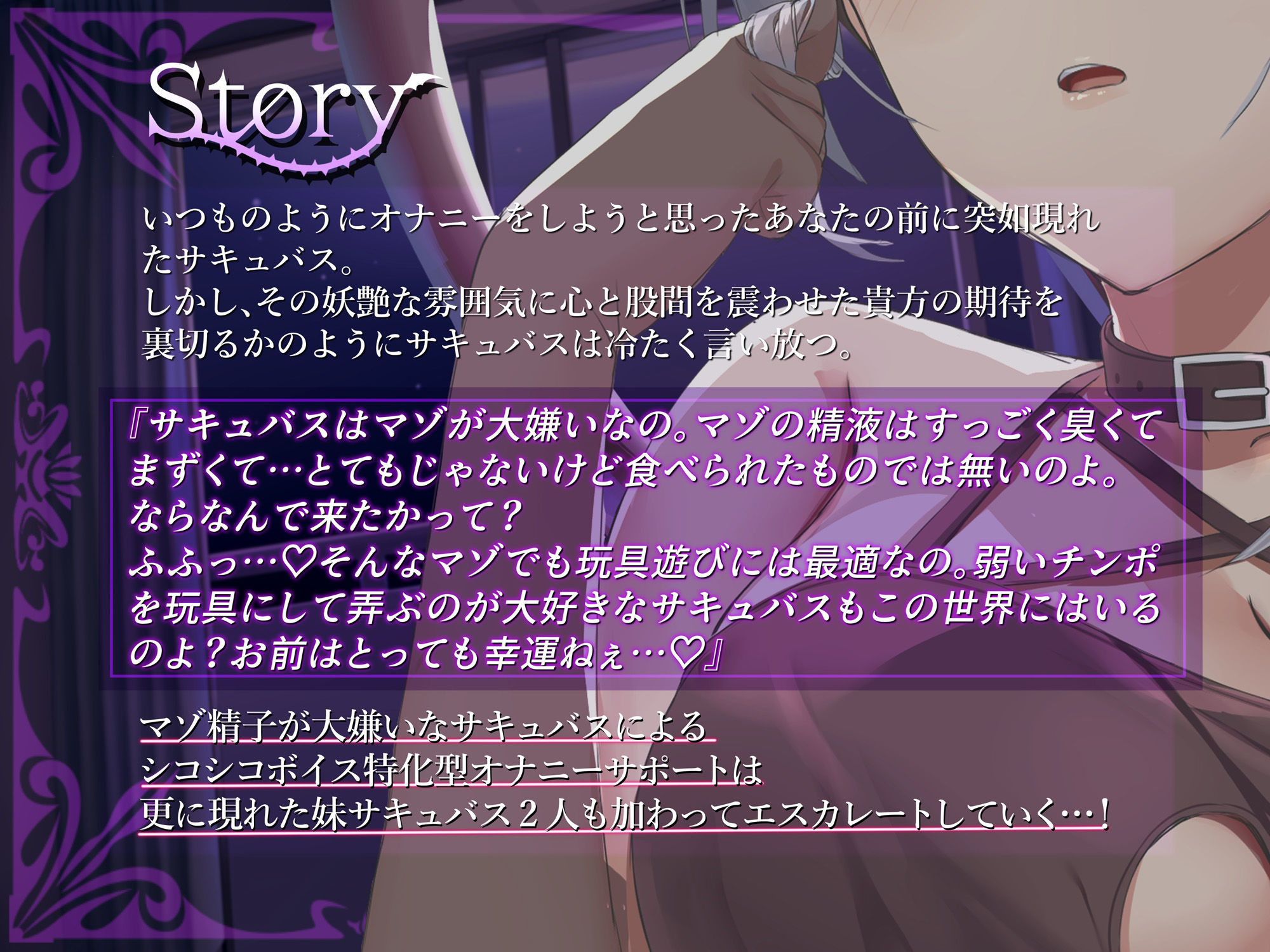 【FANZA】マゾ精子が大嫌いなサキュバス三姉妹の嘲笑囁き罵倒射精禁止遊戯【シコシコボイス特化型寸止めオナニーサポート】【無料サンプル画像8枚】 レビュー3件 / 平均4.67点 / しこたまちゃれんじ-マゾ精子が…